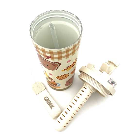 تراول ماگ استوانه ای چهارخونه تدی قهوه ای