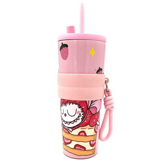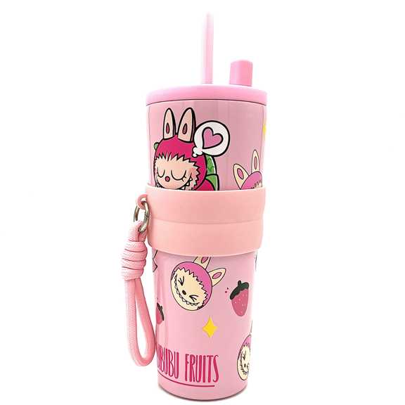 تراول ماگ لبوبو و توت فرنگی صورتی