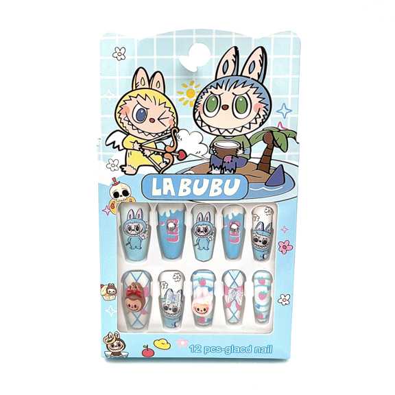 ناخن مصنوعی طرحدار لبوبو آبی پاستلی