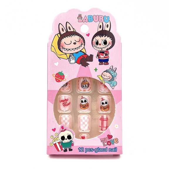 ناناخن مصنوعی مستطیلی طرحدار صورتی