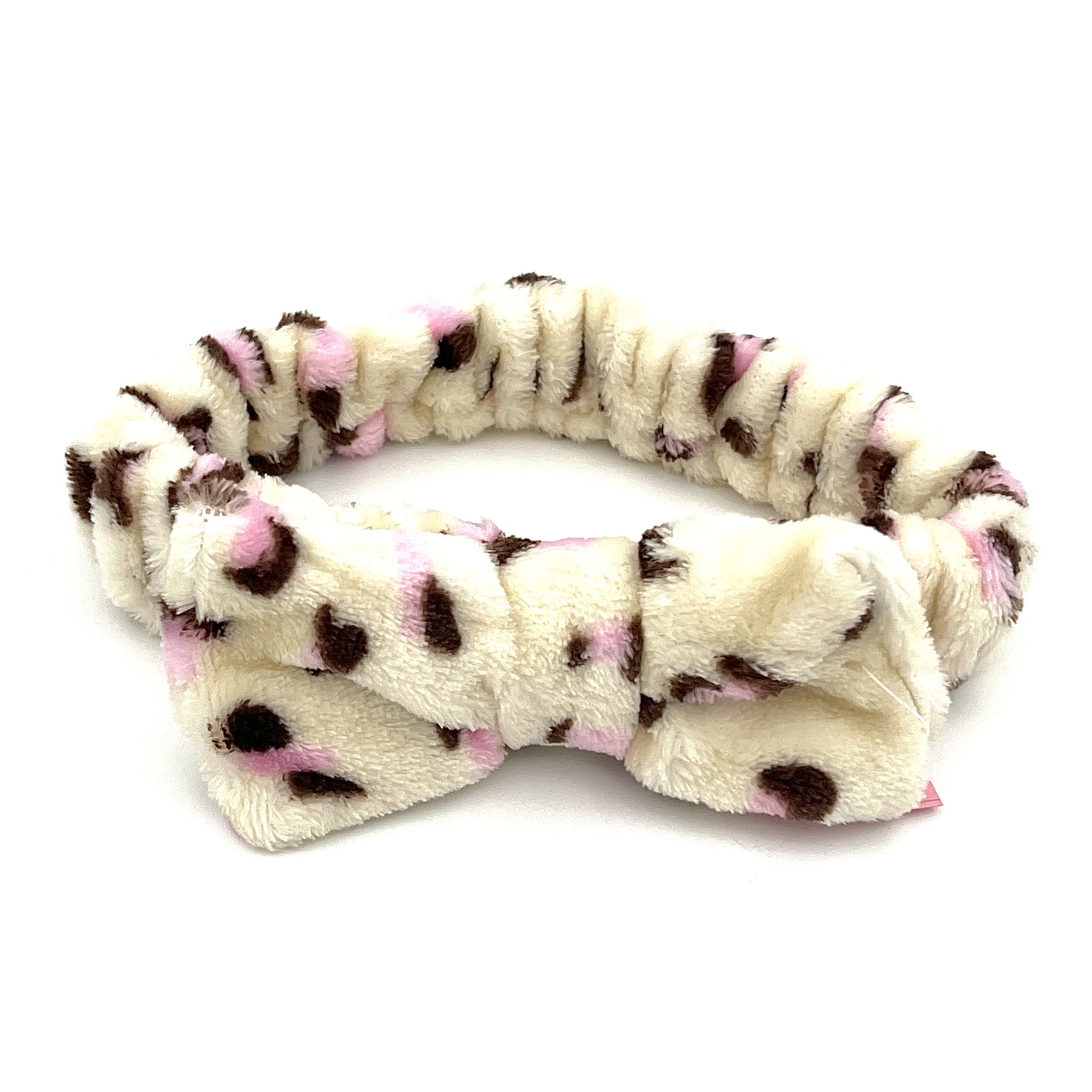 هدبند پلنگی پاپیون دار کرم صورتی