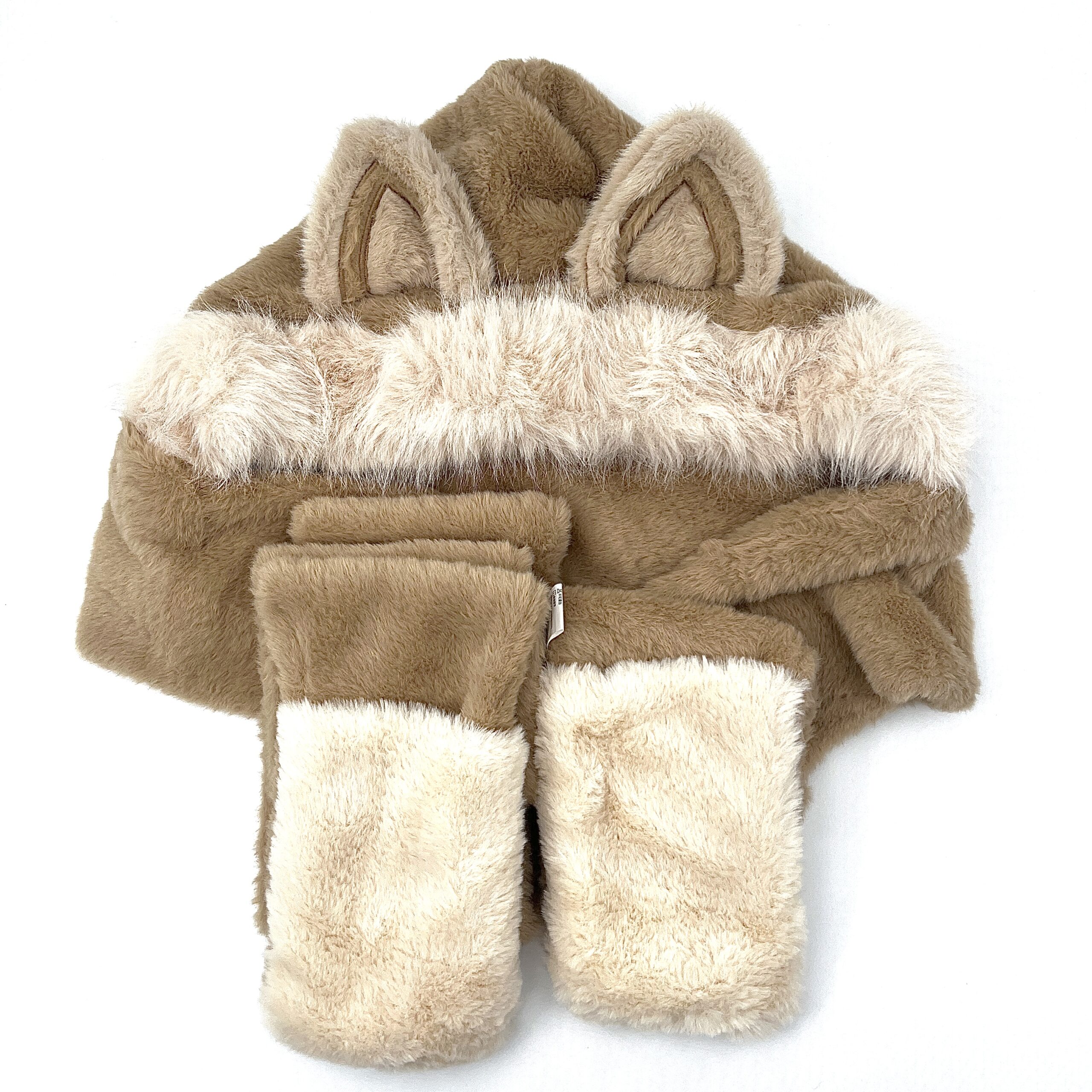 کلاه و شال گردن پشمی گربه ای قهوه ای